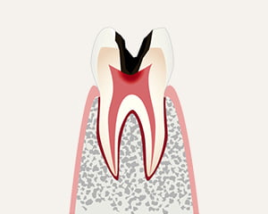 虫歯が神経にまで達し、大きな穴が空いた状態です。激しい痛みを伴うため、この段階で治療に来られる方が多くいます。