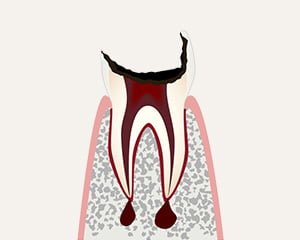 歯根だけが残る段階歯が溶けてしまい、歯根だけが残った状態です。神経が死んでいるため痛みを感じることはなく、治療ではほとんどのケースで抜歯となります。